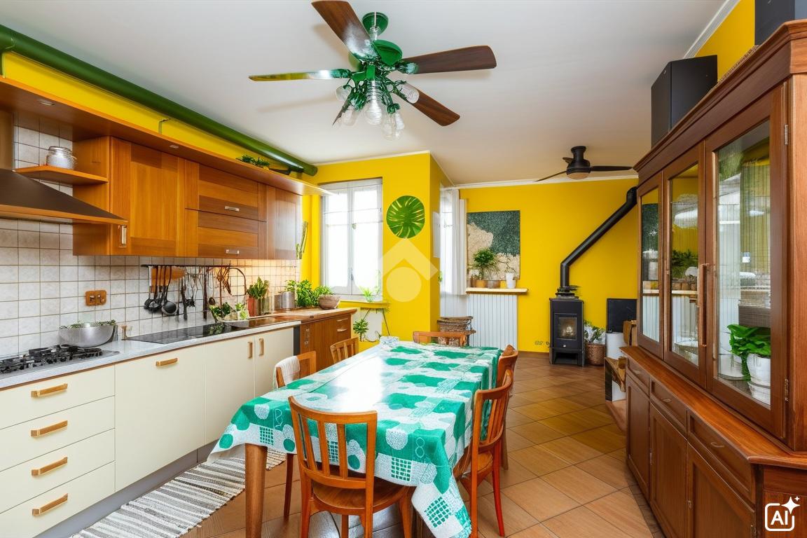 Tramite la porta blindata abbiamo l'accesso inizialmente sul soggiorno, adatto a godersi momenti di relax, molto luminoso grazie alla presenza della finestra e porta finestra che affacciano sulla corte interna con l'accesso al primo giardino della casa. Adiacente troviamo la cucina abitale, inizialmente pensata come posto per creare un secondo bagno ma successivamente ampliata per poter destinar e più spazio possibile alla zona giorno. Tramite la cucina si accede al secondo giardino della proprietà dove attualmente è per una parte piastrellato ed un'altra con giardino sintetico/orto.