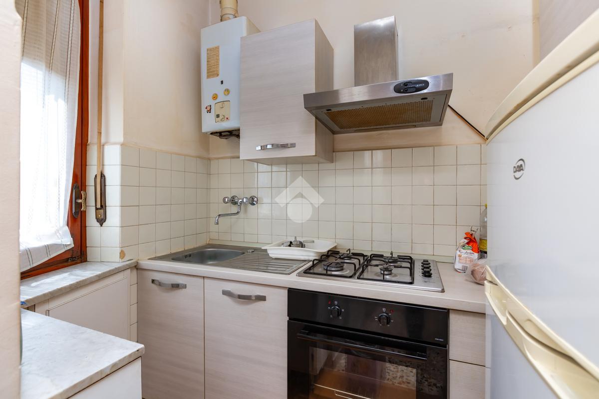 Adiacente alla zona giorno troviamo il bagno finestrato dotato di vasca ed attacchi della lavatrice. Il quarto piano permette all'appartamento di essere molto luminoso ed arioso.