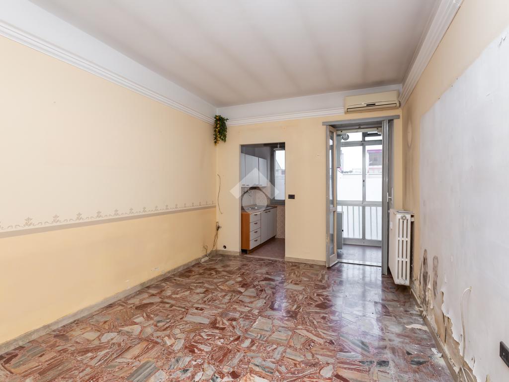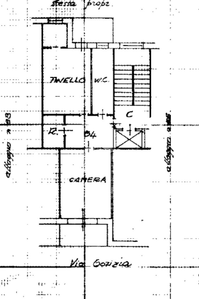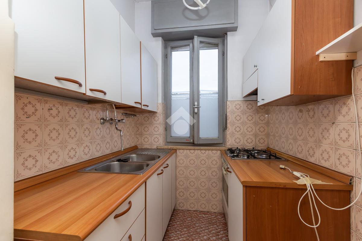 L'immobile è situato all'ultimo piano di uno stabile anni '70 dotato di ascensore. Tramite portoncino è stato ricreato un ingresso living con ampio soggiorno a vista dotato di cucinino con finestra attrezzabile su entrambe le pareti. La zona giorno è dotata di porta finestra con affaccio sul primo balcone con vista aperta sull'interno cortile dove c'è la possibilità di stendere. Inoltre, nel balcone, è presente la caldaia dell'acqua calda. Il disimpegno ha la possibilità di creare il rispostiglio o una zona studio/smart working. La camera da letto è la classica degli anni '70 ben squadrata e facilmente arredabile e anch'essa è dotata di porta fienstra con affaccio sul secondo balcone con vista su Via Gorizia. Il bagno, rivisto negli anni 2000, è dotato di vasca e di finestra. Il sesto piano rende arioso e luminoso l'appartamento.