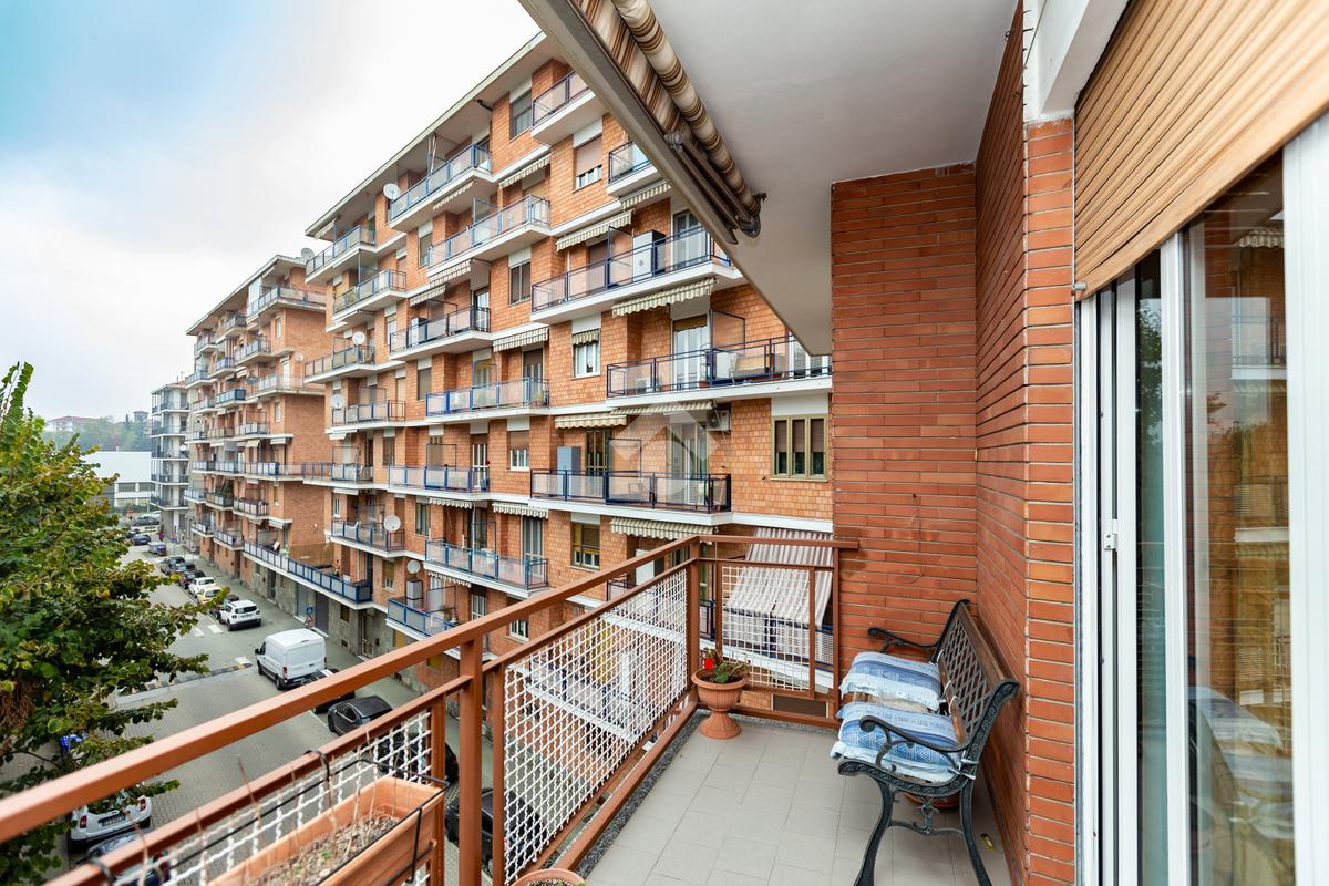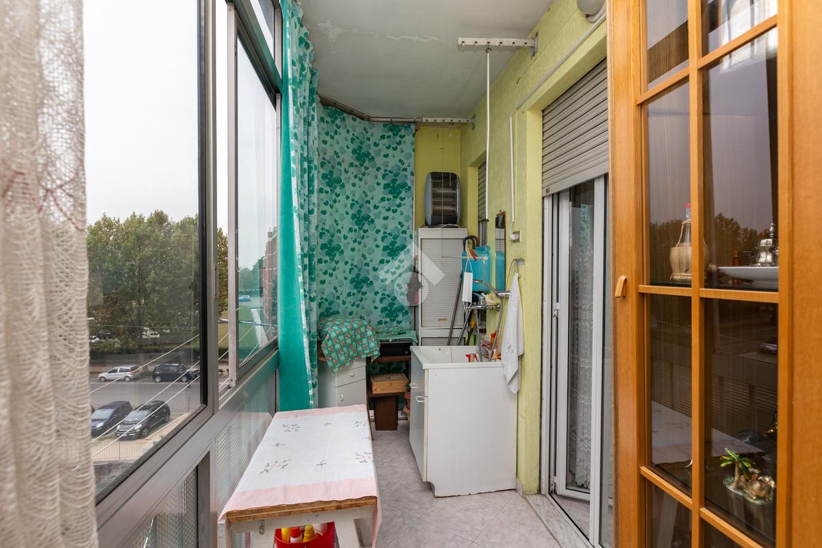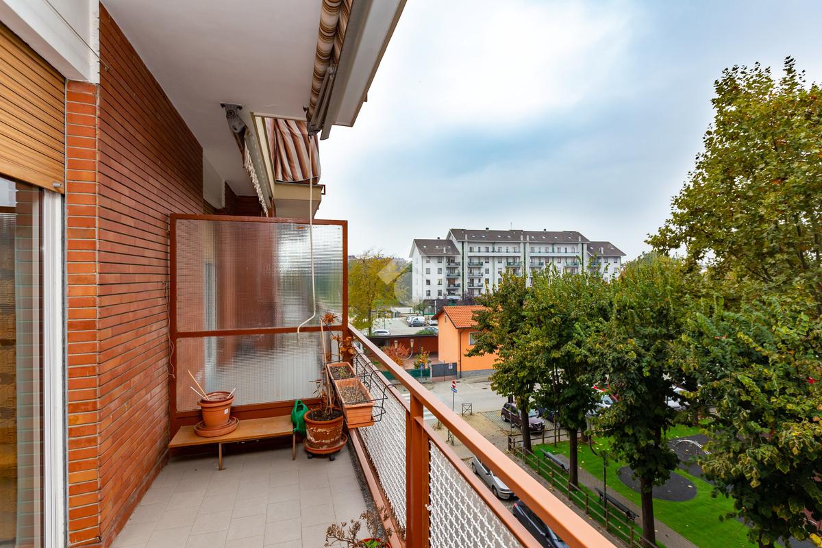Borgo Melano, precisamente in Via De Nicola, in zona tranquilla ma allo stesso tempo comoda ai servizi. Nelle vicinanze troviamo il parco giochi, le scuole primarie e a pochi passo Strada Orbassano dove ci sono le fermate principali dei pullman che portano a Torino e ad Orbassano. In stabile in klinker dotato di ascensore e rivisto nelle parti comuni quali tetto e facciata pochi anni fa. Terzo piano con doppia esposizione. Tramite portoncino blindato c'è l'ingresso che da accesso a tutte le stanze. La zona giorno è dotata di cucinino e di finestra e di porta finestra con affaccio sul primo balcone piastrellato e verandato dove ci sono gli attacchi per la lavatrice e c'è la possibilità di stendere. Le due camere sono ampie e facilmente arredabili;. una dotata di finestra e l'altra di porta finestra con affaccio sul secondo balcone con vista aperta sulle montagne. Il bagno è dotato di doccia e di finestra. L'appartamento è stato ristrutturato circa negli anni 2000. Sono stati rivisti gli impianti, idraulici ed elettrici, la pavimentazione, gli infissi che sono in alluminio con il doppio vetro e il bagno dotato di doccia e di finestra. Il riscaldamento è centrallizzato con le termovalvole e le spese di gestione sono contenute.