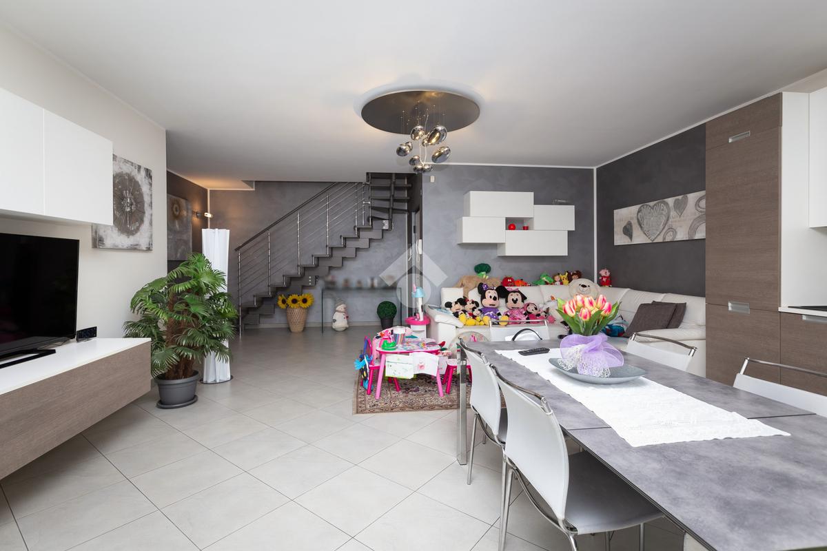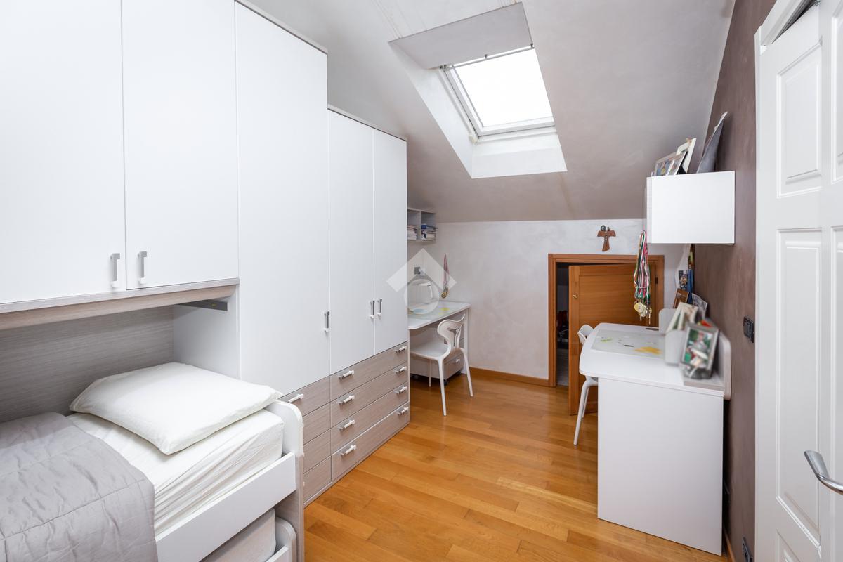 In zona Fornaci, precisamente in Via Montello, zona tranquilla ma allo stesso tempo comoda ai principali servizi quali scuole, negozi, circolo del tennis e a pochi metri dal centro commerciale “Le Fornaci” e dalle fermate dei pullman che portano a Torino e ad Orbassano. In stabile signorile del 2010, appartamento al primo piano dove è presente un piano mansardato. Tramite portoncino blindato si ha l’accesso all’ampia zona giorno living dotata di cucina a vista con porta finestra fuori misura in legno color bianco dotato di gelosie e di zanzariere con affaccio sul terrazzo vivibile con luce esterna con vista su Via Montello. Il disimpegno divide la zona giorno dalla zona notte dotato di ripostiglio dove troviamo un’ampia camera da letto ben squadrata dotata anch’essa di porta finestra con affaccio sul terrazzo ed il bagno squadrato dotata di vasca e di finestra. Nella zona giorno è presente un elegante scala interna in acciaio che porta al piano mansardato dove sono presenti due camere da letto, di cui una dotata di velux e una di porta finestra con affaccio sul terrazzo coperto. In mansarda è presente il secondo bagno dotato di doccia e di velux.