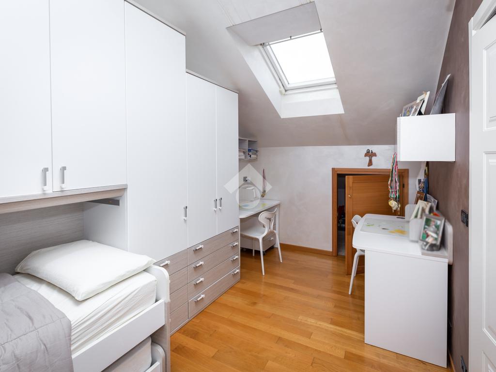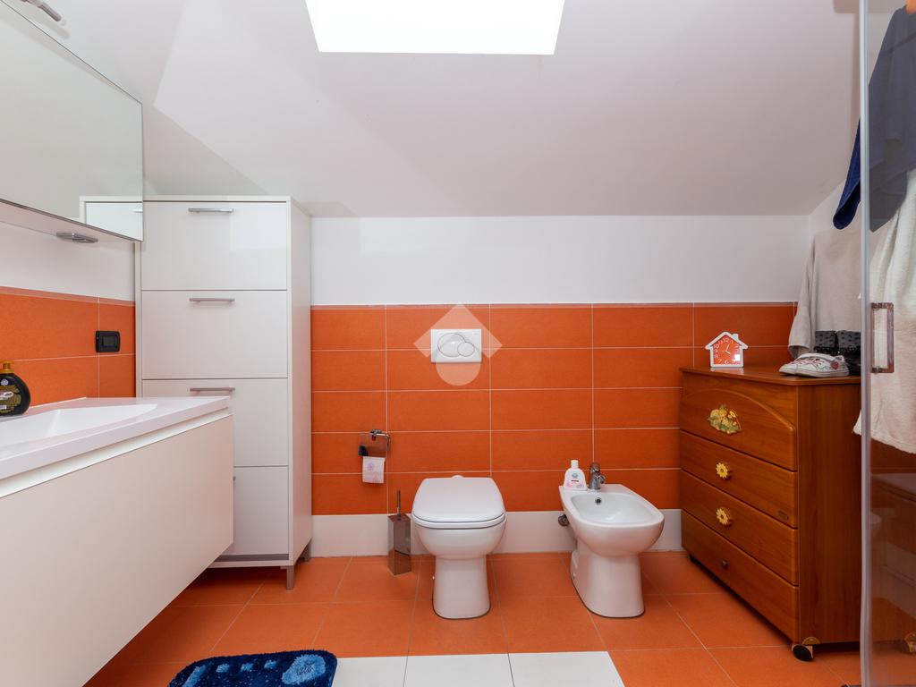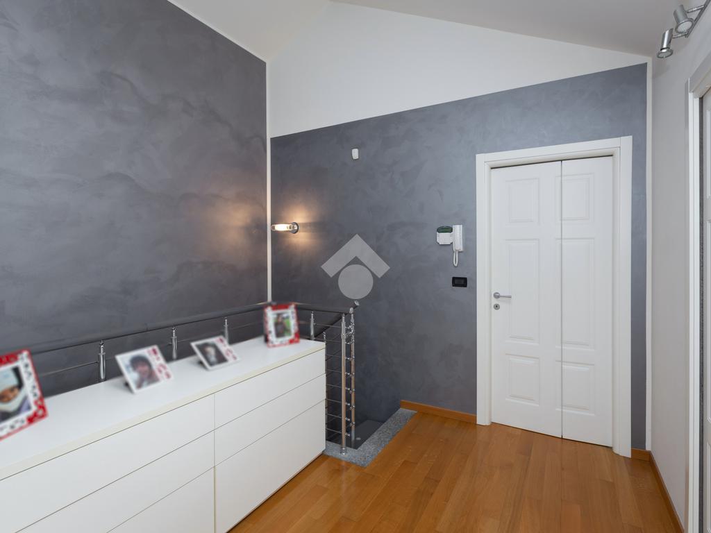 Al piano primo al pavimento è omogeneo in tutte le stanze ad eccezione del bagno con piastrelle dotate in diagonale mentre al piano mansardato la pavimentazione è in parquet ad eccezione del bagno. L’appartamento è dotato di antifurto, videocitofono e citofono in entrambi i piani, zanzariere e gelosie in tutta casa.