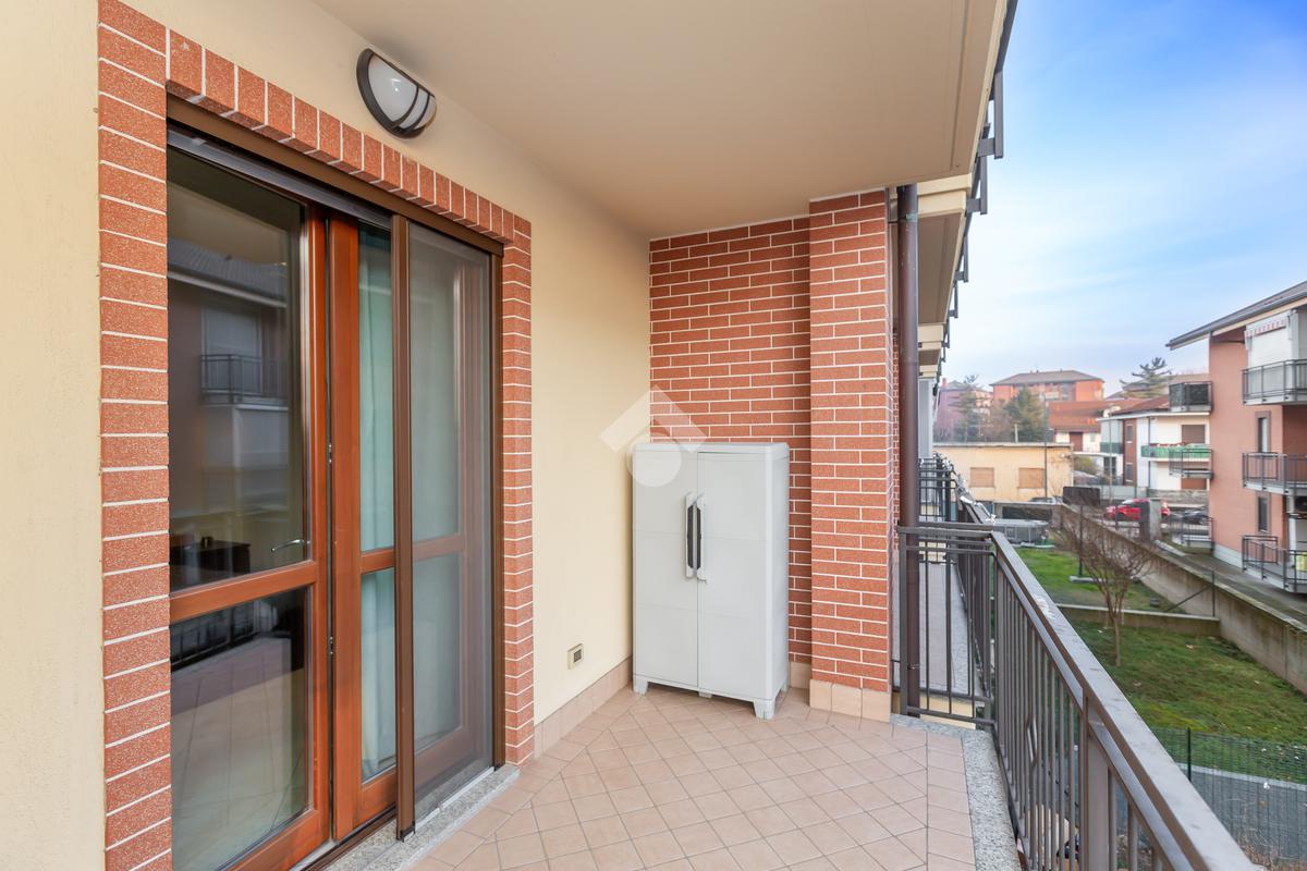 In zona Fornaci, precisamente in Via Rossini, via tranquilla e chiusa con facilità di parcheggio e a pochi passi dai principali servizi quali scuole, negozi e fermate dei pullaman che portano a Torino e ad Orbassano. In stabile del 2013 in paramano senza barriere architettoniche con pannelli solari per l'acqua sanitaria e con ascensore ampio che porta fino al piano interrato. Appartamento al primo piano. Tramite porta blindata c'è l'accesso diretto alla zona giorno living con cucina lineare a vista dotato di finestra e di porta finestra con infissi in legno con vetro 4+4 con sfocio sul primo terrazzino vivibile. Il disimpegno divide la zona giorno dalla zona notte dove troviamo due camere da letto entrambe dotate di due porta finestra differenti che affacciano su altri due terrazzini. Il bagno, ampio è dotato di finestra e di vasca. L'appartamento è dotato di zanzariere in tutte le finestre e prte finestra, videocitofono e predisposizione per i condizionatori. Il riscaldamento è semiautonomo a pavimento. Al piano interrato è presente la cantina e c'è la possibilità di acquistare un box auto a 20.000 euro.