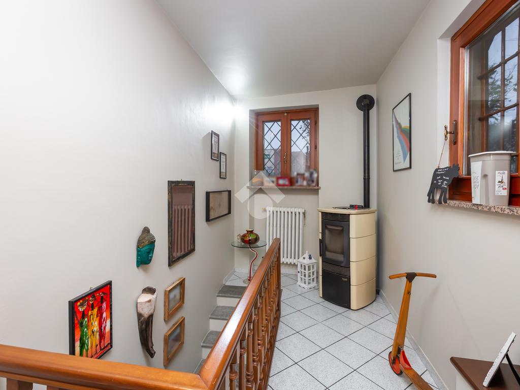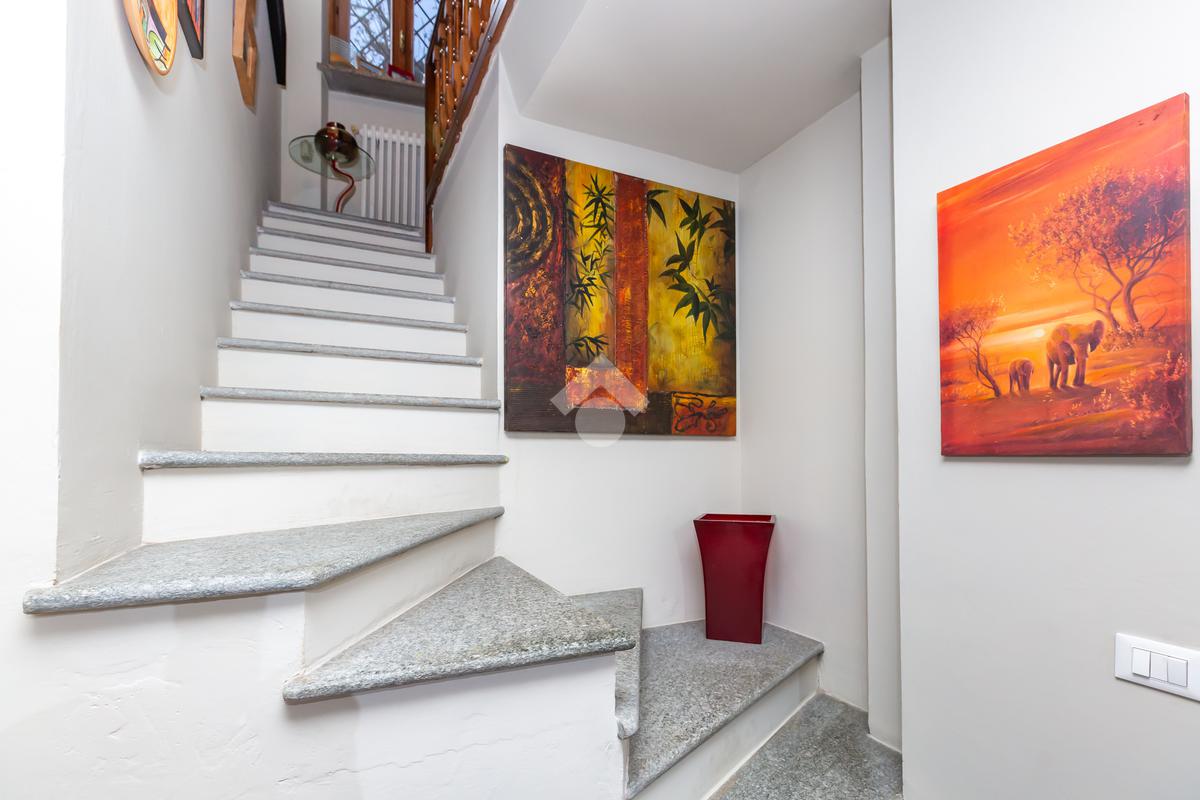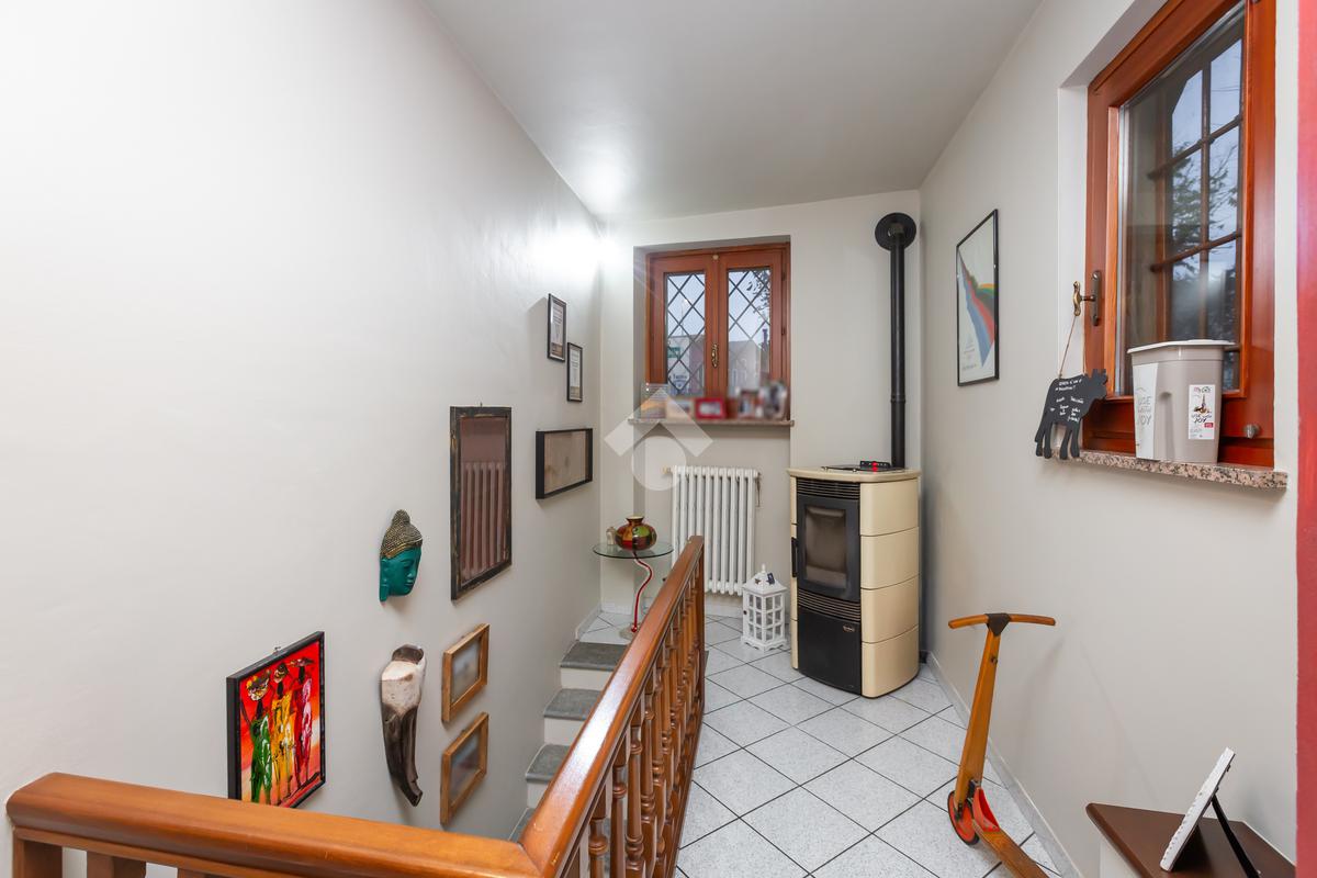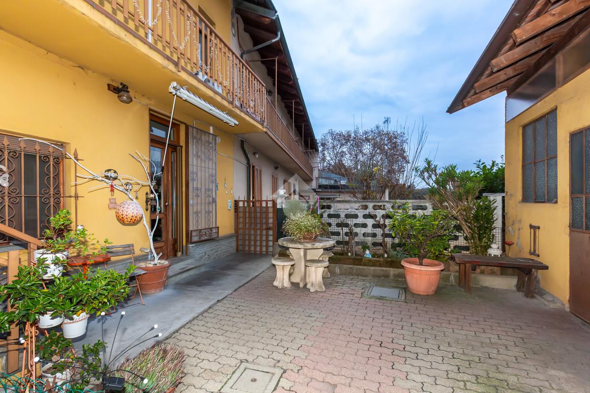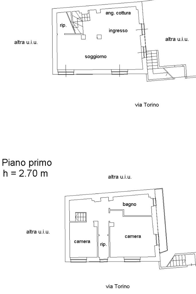 L’abitazione si sviluppa su due livelli. Al piano terra, completamente ristrutturato nel 2011, si viene accolti da una luminosa zona living con cucina lineare, ripostiglio utilizzabile anche come dispensa e camino funzionante, elemento che dona calore e comfort all’ambiente. Una scala interna in pietra di Luserna conduce al piano superiore, dove si trovano due camere da letto, di cui una con balcone affacciato sul cortile interno, un secondo ripostiglio e un bagno ristrutturato nel 2023, oltre alla predisposizione per l’installazione di una stufa.