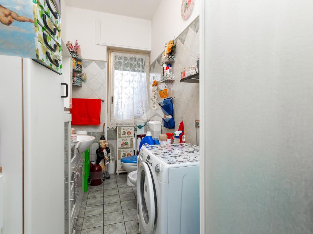 Tramite portoncino blindato si accede alla cucina abitabile dove c’è la possibilità di posizionare una cucina lineare con porta finestra con affaccio sul primo balcone con vista aperta e possibilità di stendere. Il disimpegno divide la zona giorno dalla zona notte dove è presente la camera da letto che risulta ben squadrata e facilmente arredabile con l’affaccio sul terrazzino. Il bagno, classico degli anni 70’ è dotato di finestra e di doccia. L’alloggio è stato ristrutturato nel 2012.